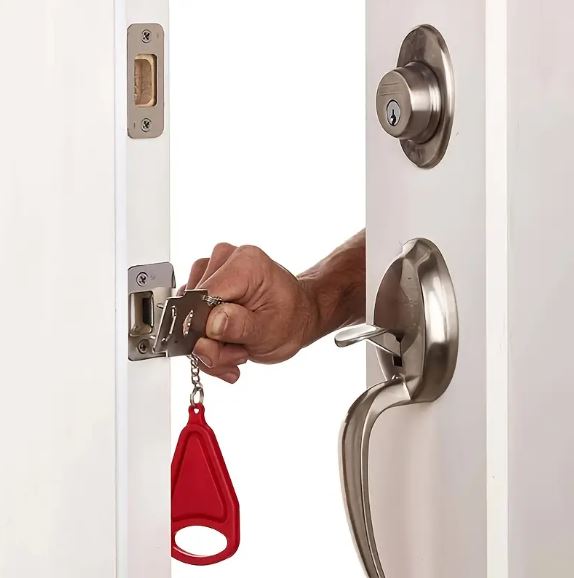 Aumenta tu seguridad en cualquier lugar con este cerrojo portátil de seguridad. Su diseño compacto y resistente te permite bloquear puertas desde el interior sin necesidad de herramientas ni instalación permanente. Ideal para viajes, hoteles, departamentos compartidos o alquileres temporales (Airbnb).